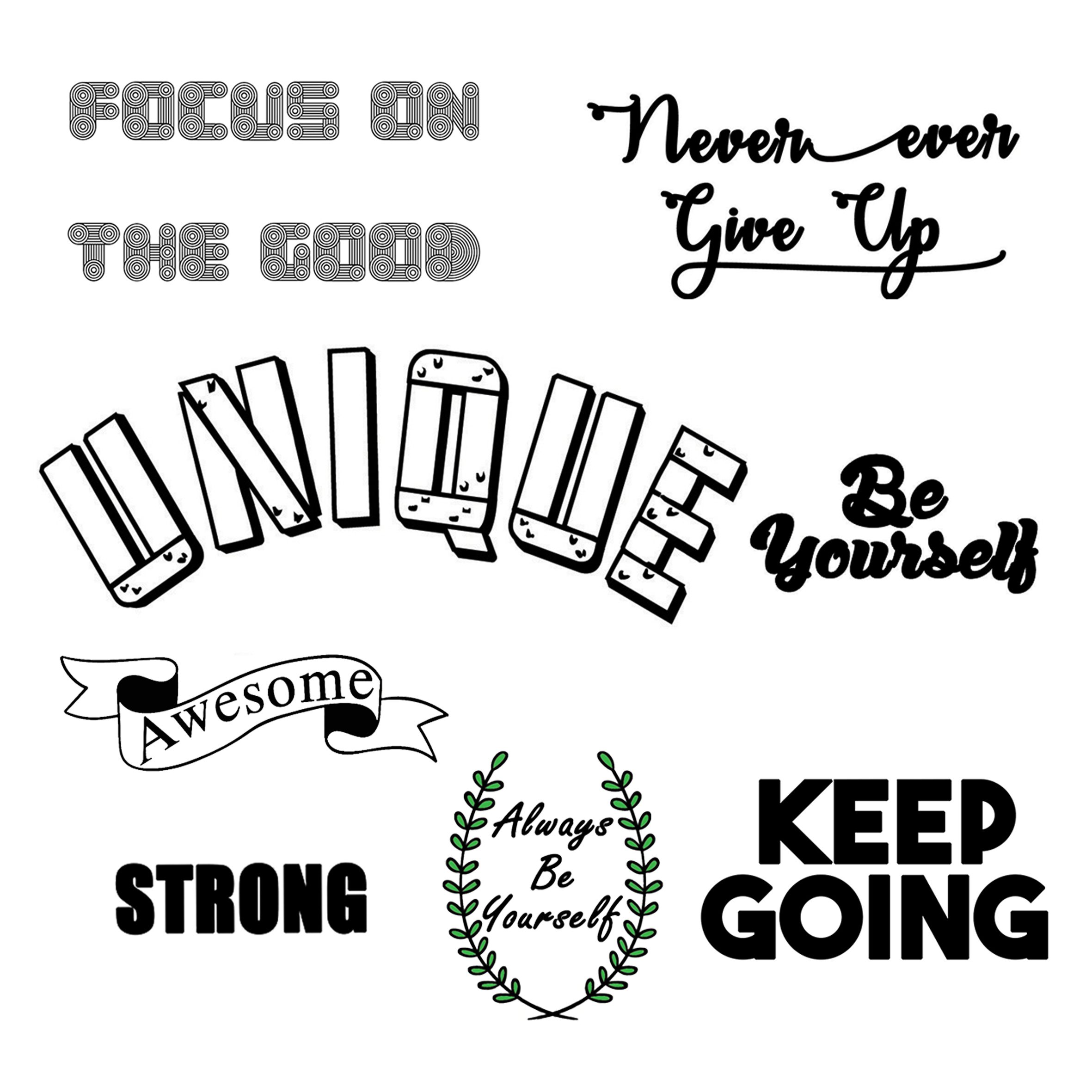 Say it loud, say it proud — and wear your words like art! The “Typography Tattoo Set“ is a bold, stylish collection of motivational and inspirational quotes designed for dreamers, doers, and everyone in between. Whether you’re chasing your goals, spreading good vibes, or simply expressing yourself, these typographic designs turn positive energy into wearable magic.